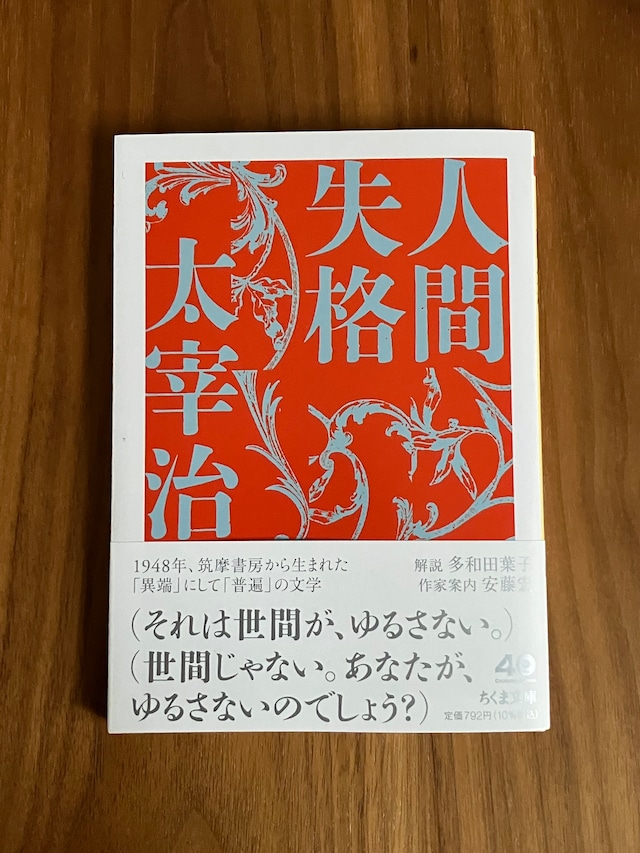 『人間失格』 太宰治 ちくま文庫/文庫判/194頁 2025/12/10 定価900円+税 ーーーーーー 1948年、筑摩書房から生まれた永遠の文学。 1948年、入水直前に書き上げられた問題作は筑摩書房から刊行された。 ちくま文庫40周年記念&特別カラー口絵収録。 解説 安藤宏、多和田葉子 (以上、版元さまより)