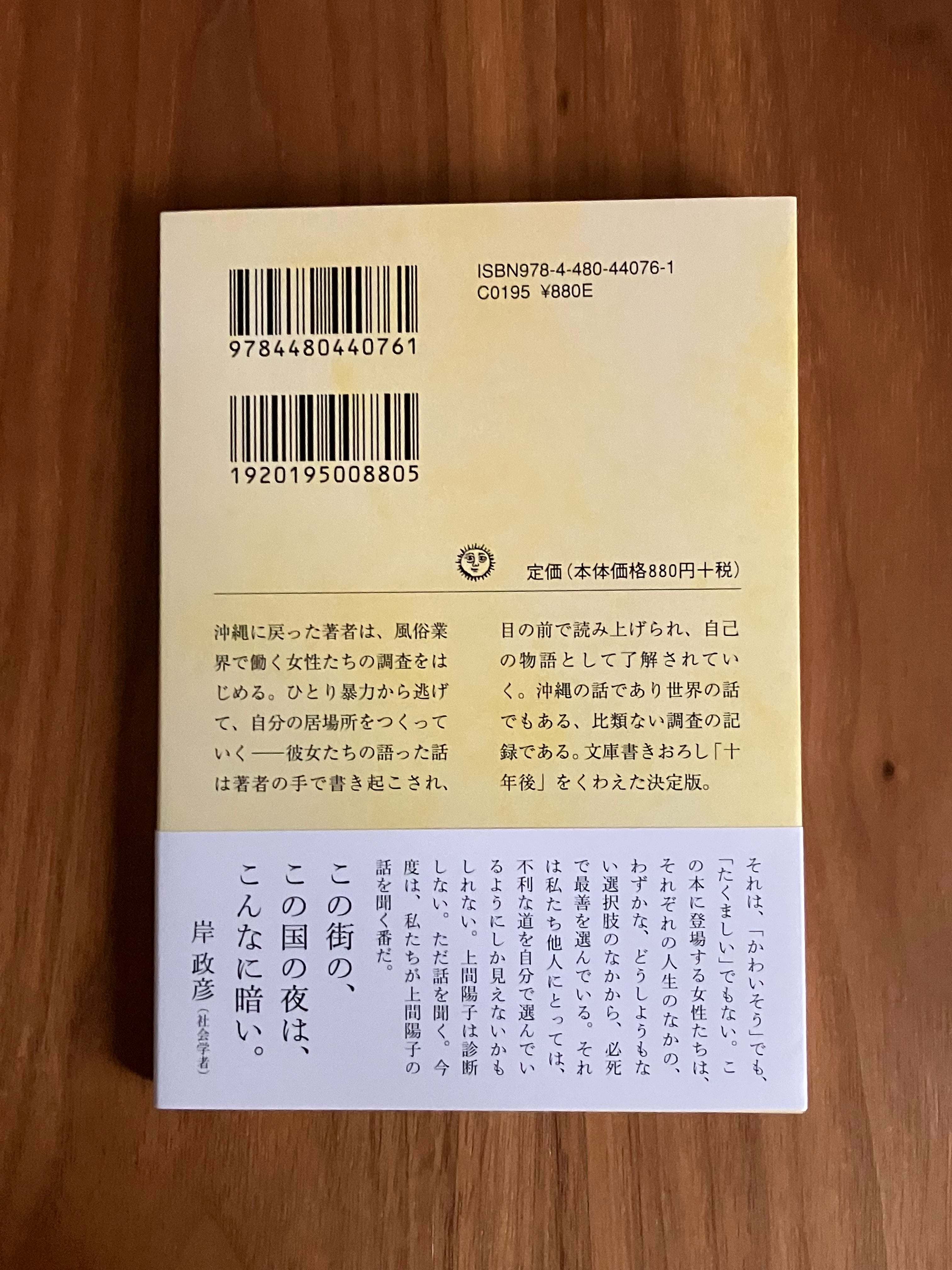 沖縄に戻った著者は、風俗業界で働く女性たちの調査をはじめる。ひとり暴力から逃げて、自分の居場所をつくっていく──彼女たちの語った話は著者の手で書き起こされ、目の前で読み上げられ、自己の物語として了解されていく。沖縄の話であり世界の話でもある、比類ない調査の記録である。