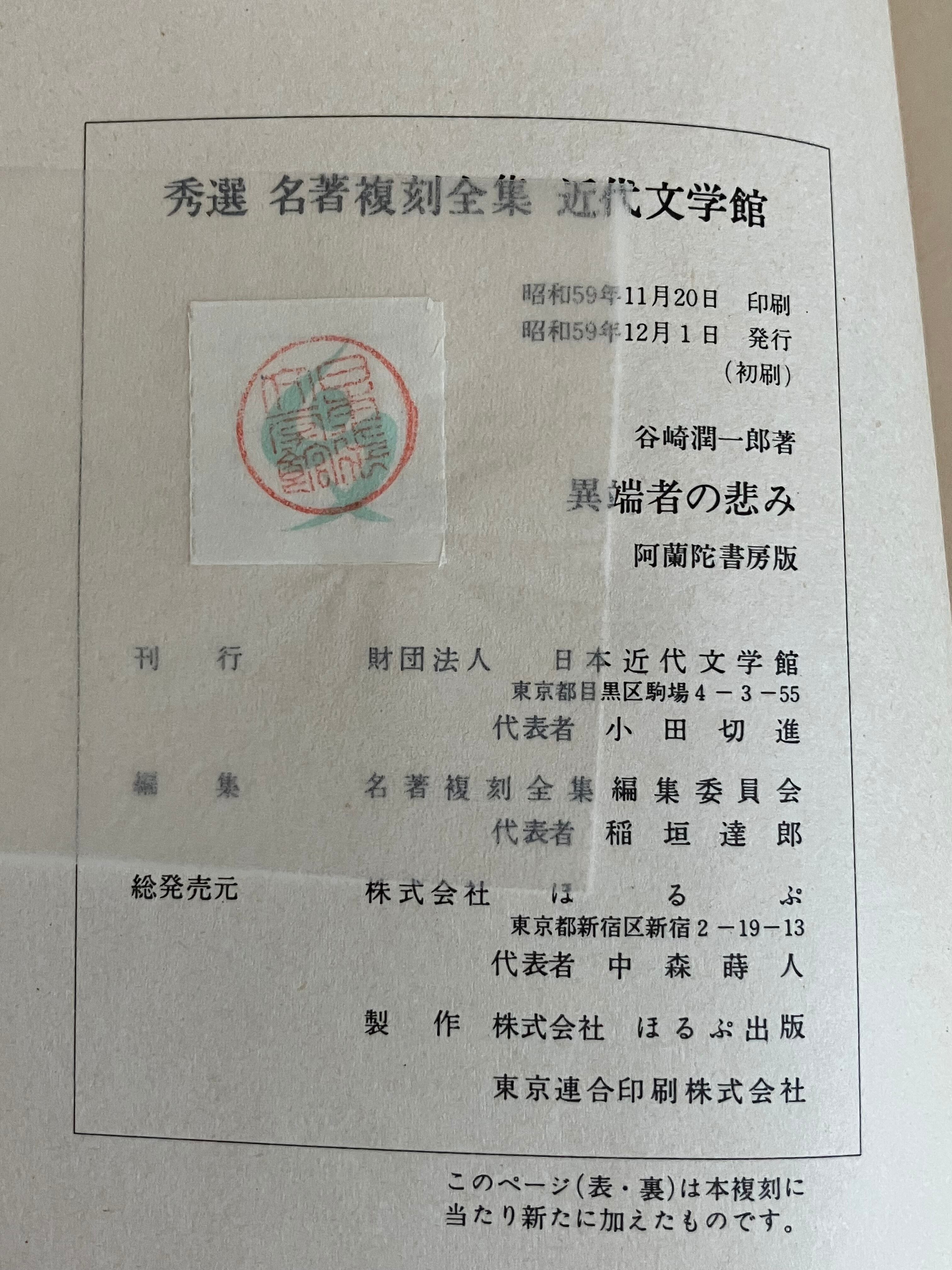 阿蘭陀書房版 大正6年9月15日発行の復刻版